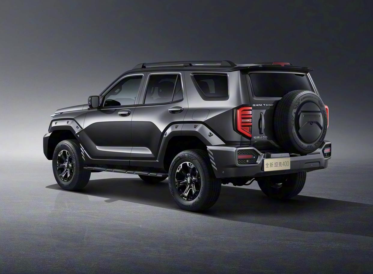 全新坦克400采用了家族式的经典设计,具有很高的辨识度。前舱盖采用了两侧高、中间扁平的设计。多边形黑色格栅搭配着双辐式镂空格栅,还有中间极具个性化的坦克车标。造型立体的前大灯加入了别致的LED光带、带有透镜功能的LED远近光光源,科技感十足。粗犷的前保险杠两侧加入了矩形的设计,中间还有两侧矩形的进气口,中间都配备了菱形镂空式的中网,两侧配备横置式的雾灯设计。梯形的防撞梁,增添了更多的户外气息。车尾造型比较方正,配备了外挂式备胎设计,侧开式的尾门。两侧配备了熏黑的尾灯,内部融入了目字形的光柱,辨识度很高。