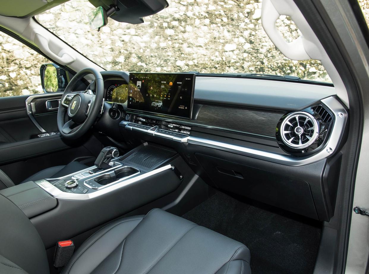 核心部分,坦克400搭载了Hi4-T版采用的2.0T纵置发动机+前置单电机的组合,系统的综合功率310千瓦,综合扭矩为750牛·米,它匹配37.1kWh电池组,WLTC工况下的纯电续航为105公里,最大支持103kW的充电功率;而Hi4-Z车型则是2.0T纵置发动机+前后双电机+3挡DHT的组合,它的系统综合功率为635千瓦,系统综合扭矩为1195牛·米,百公里加速时间仅4.3秒。匹配59.05kWh的电池组,WLTC工况下的纯电续航里程为200公里,采用800V高压平台,最大快充功率为163kW。两车都支持最大6kW的对外放电。